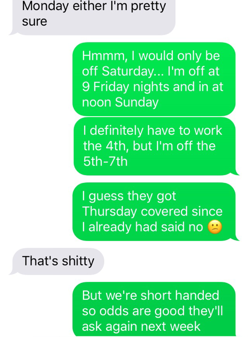 Our first few messages were via Facebook, followed by many, many more texts...